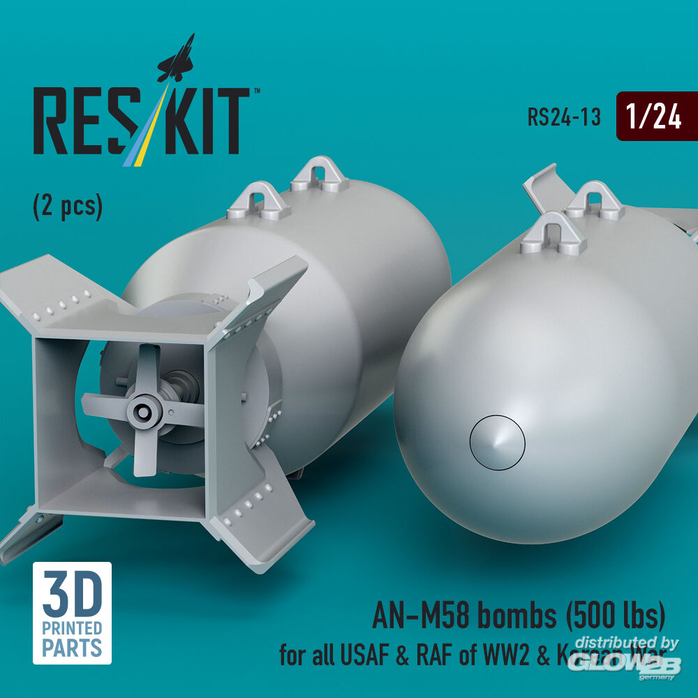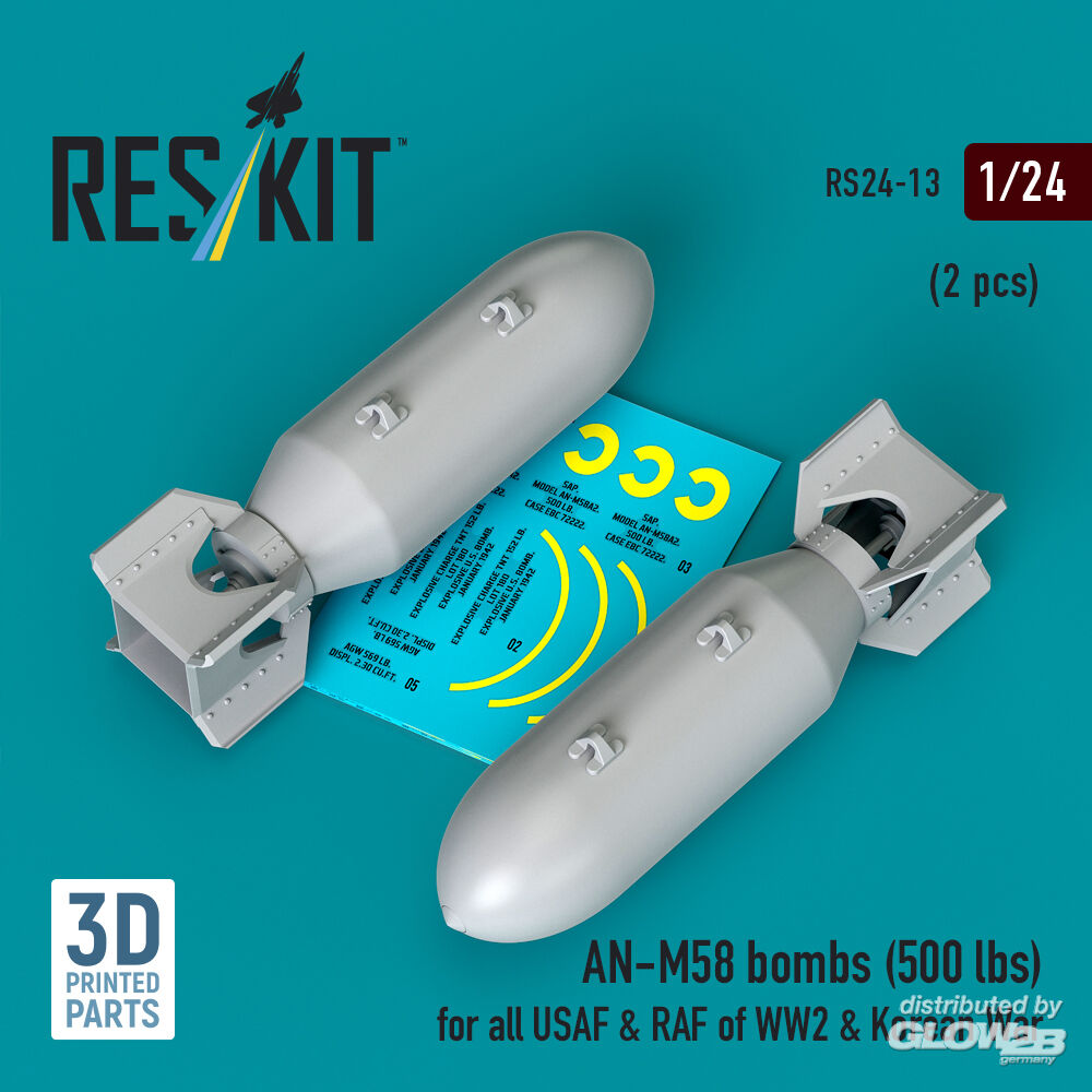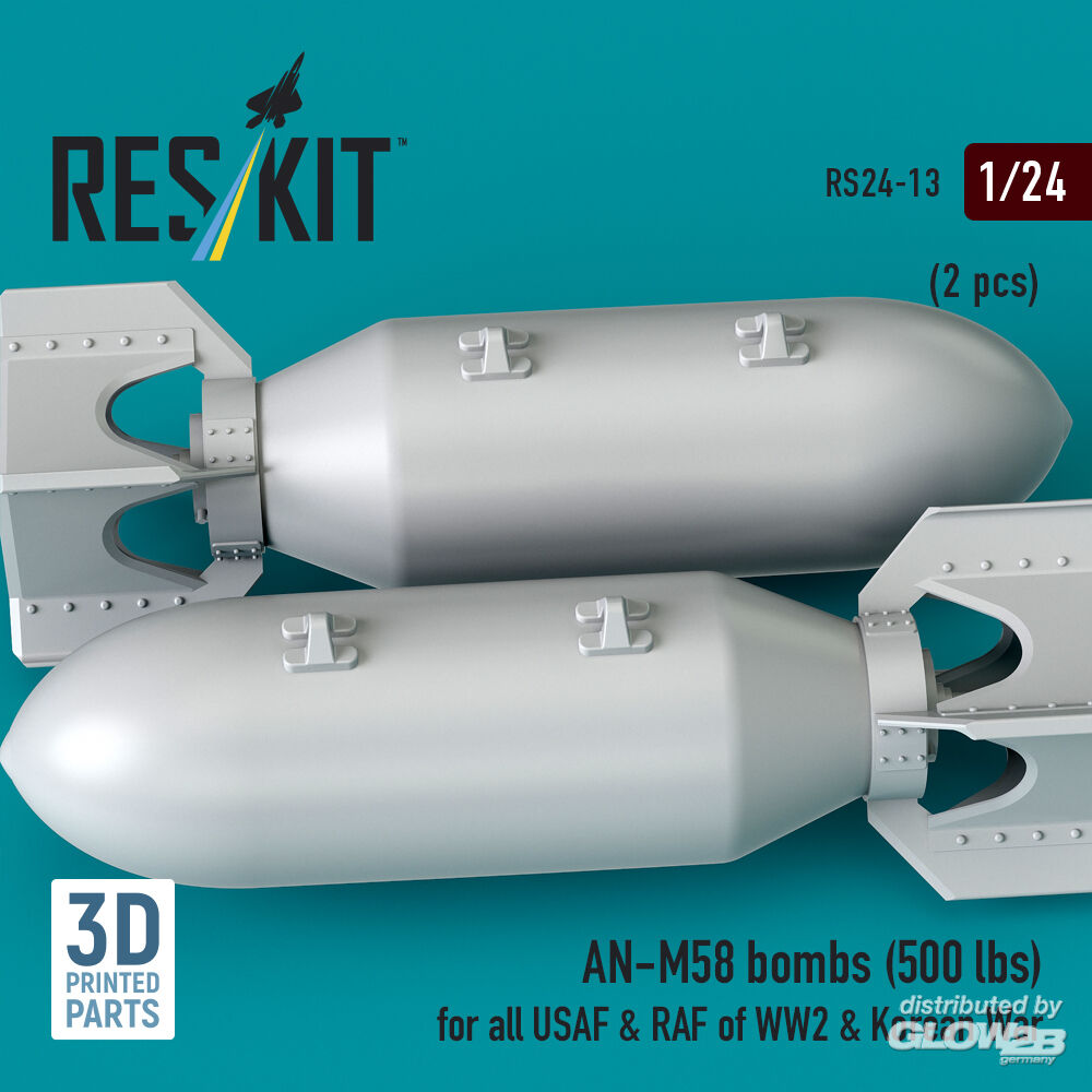 RESKIT Models: AN-M58 bombs (500 lbs) for all USAF & RAF of WW2 & Korean War (2 pcs) (3D Printed) in 1:24 [4591100132]