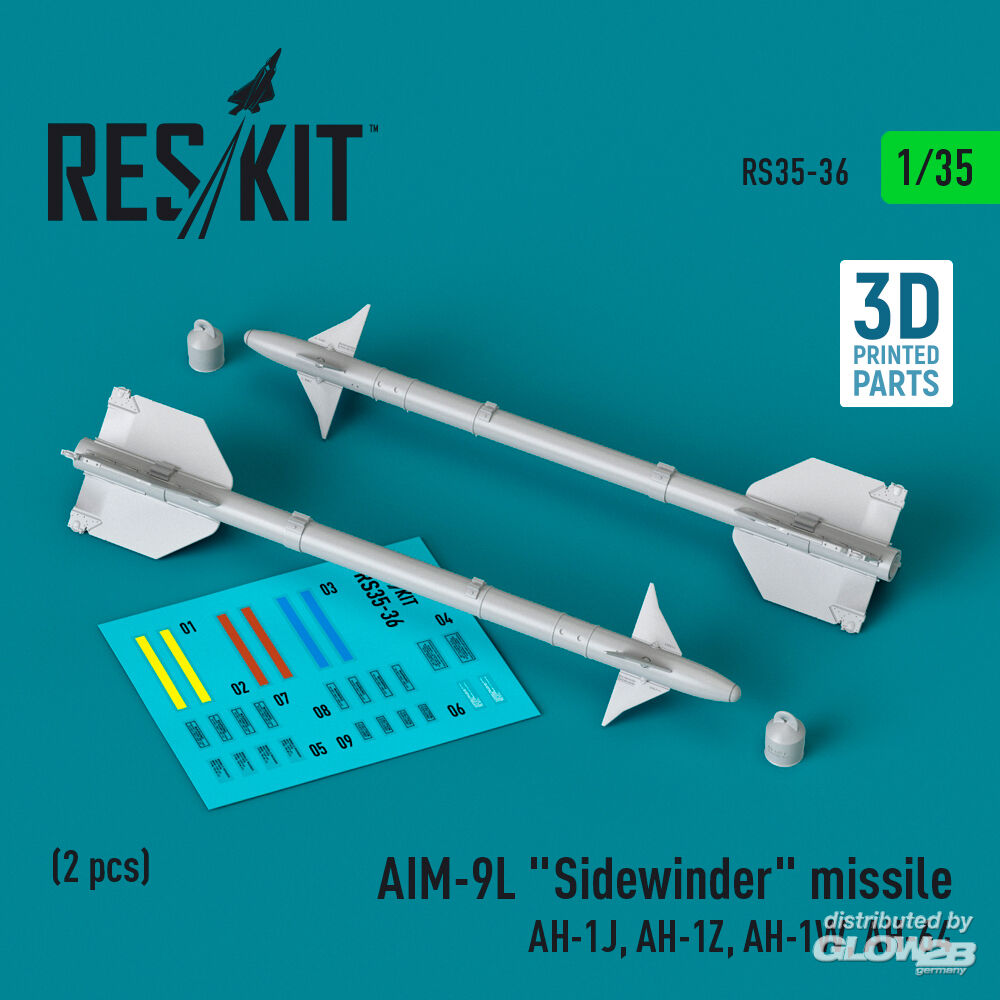 RESKIT Models: AIM-9L Sidewinder missile (AH-1J, AH-1Z, AH-1W, AH-64) (2 pcs) (3D Printed) in 1:35 [4592100360]