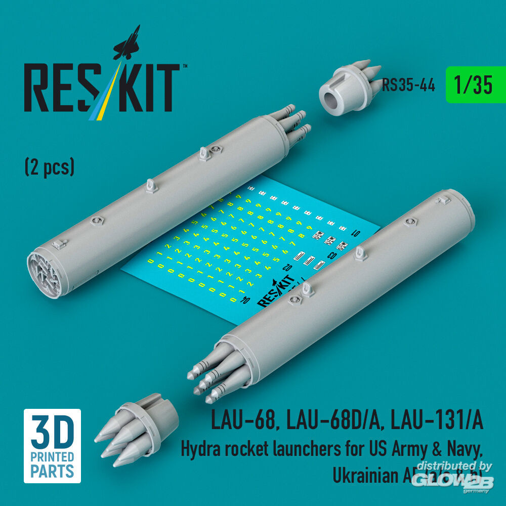 RESKIT Models: LAU-68, LAU-68D/A, LAU-131/A Hydra rocket launchers for US Army & Navy, Ukrainian AF (a/c & h) (2pcs) (3D Printed) in 1:35 [4592100445]