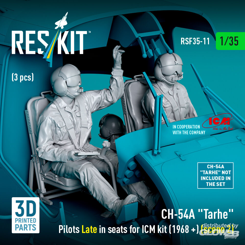 RESKIT Models: CH-54A Tarhe Pilots Late in seats for ICM kit (1968 +) (scene 2) (3 pcs) (3D Printed) in 1:35 [4592200114]