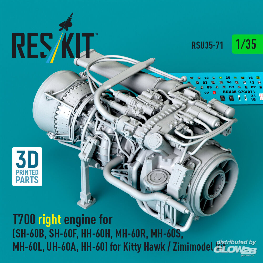 RESKIT Models: T700 right engine (SH-60B, SH-60F, HH-60H, MH-60R, MH-60S, MH-60L, UH-60A, HH-60) for Kitty Hawk / Zimimodel kit (3D Printed) in 1:35 [4592200718]