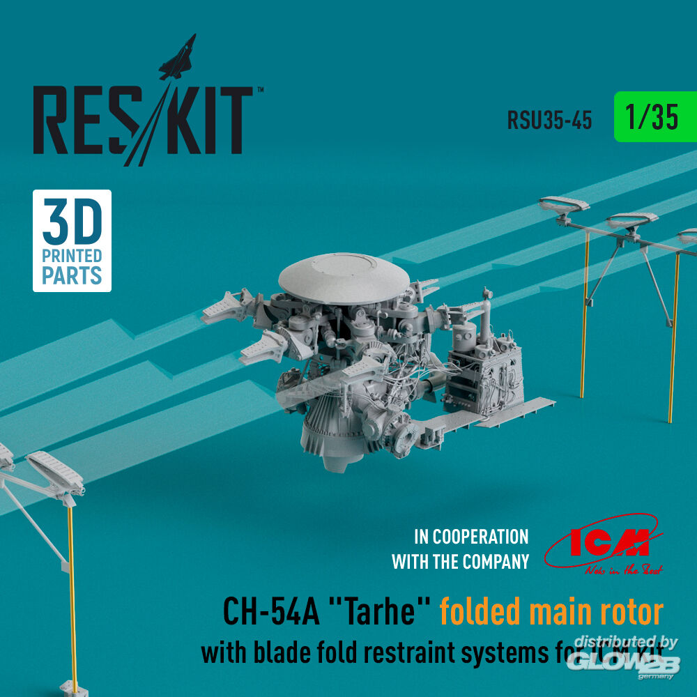 RESKIT Models: CH-54A Tarhe folded main rotor with blade fold restraint systems for ICM kit (3D Printed) in 1:35 [4592300456]