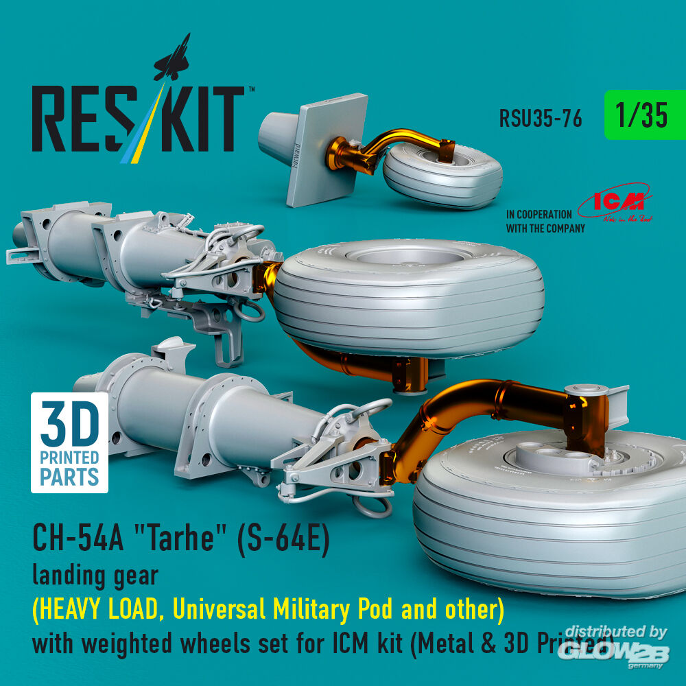 RESKIT Models: CH-54A Tarhe(S-64E) landing gear (HEAVY LOAD, Universal Military Pod and other) with weighted wheels set for ICM kit (Metal & 3D Printed) in 1:35 [4592300760]