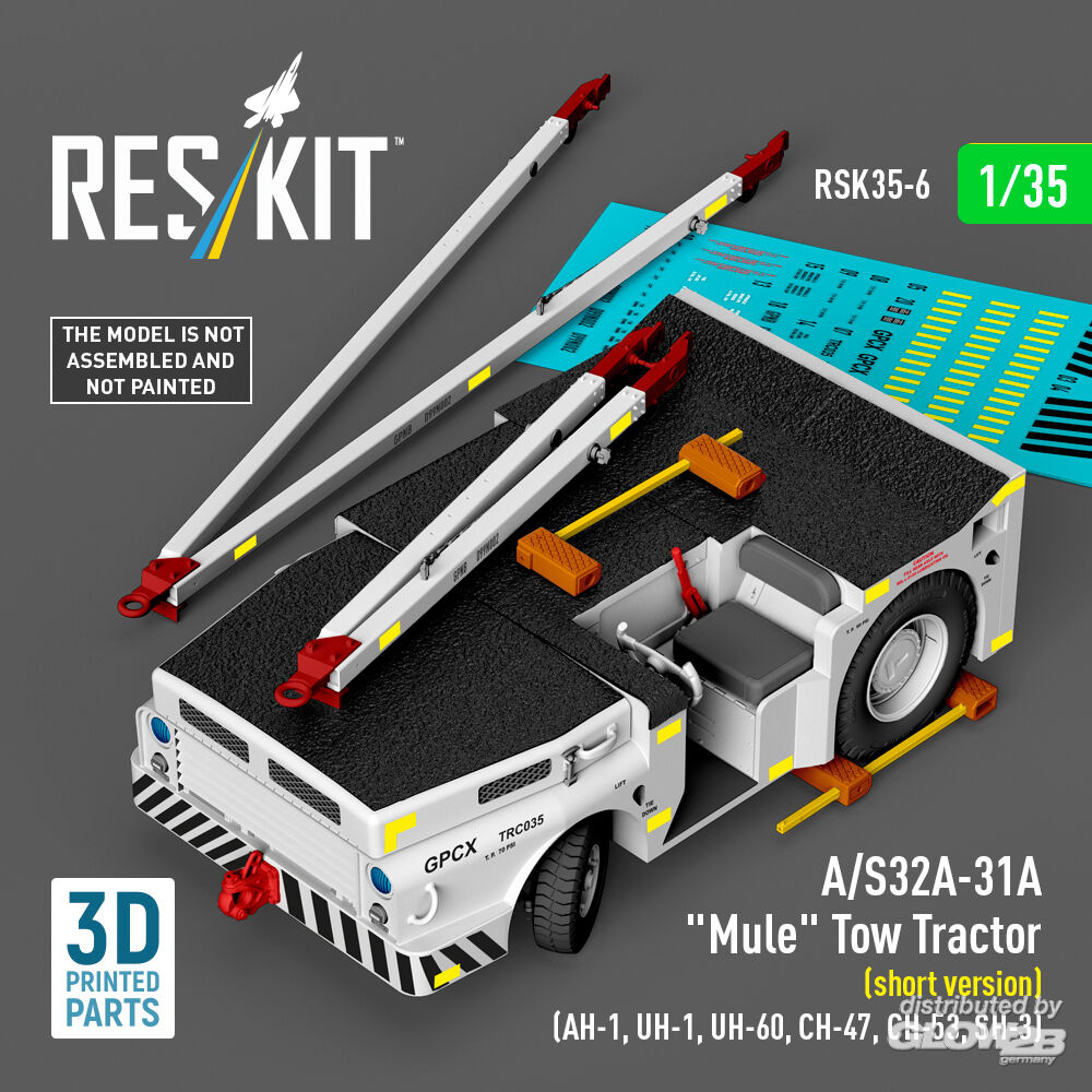 RESKIT Models: A/S32A-31A Mule Tow Tractor (short version) (AH-1, UH-1, UH-60, CH-47, CH-53, SH-3) (3D Printed model kit) in 1:35 [4592700065]
