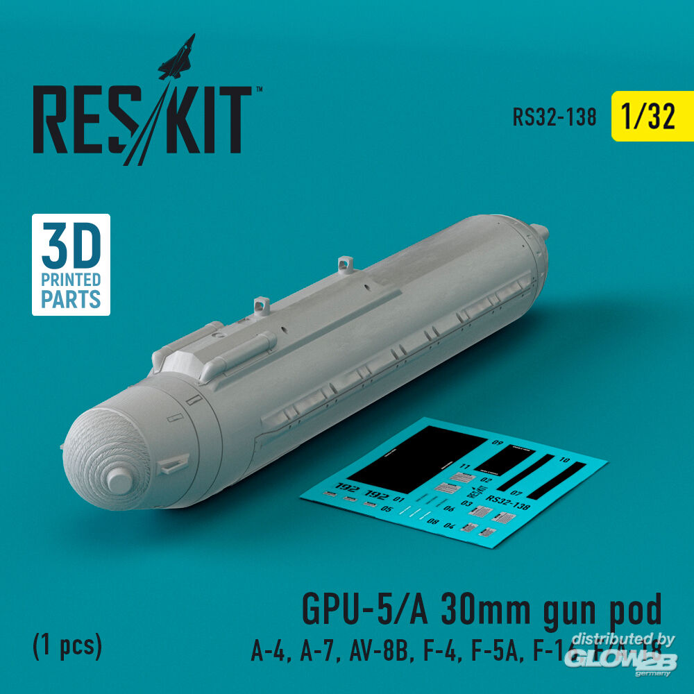 RESKIT Models: GPU-5/A 30mm gun pod (1 pcs) (A-4, A-7, AV-8B, F-4, F-5A, F-16, F/A-18) (3D Printed) in 1:32 [4593101380]