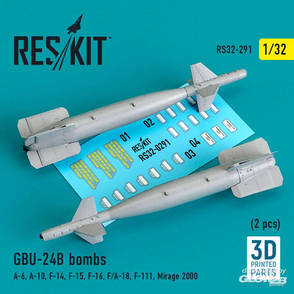 RESKIT Models: GBU-24B bombs (2 pcs) (A-6, A-10, F-14, F-15, F-16, F/A-18, F-111, Mirage 2000) (3D Printed) in 1:32 [4593102912]