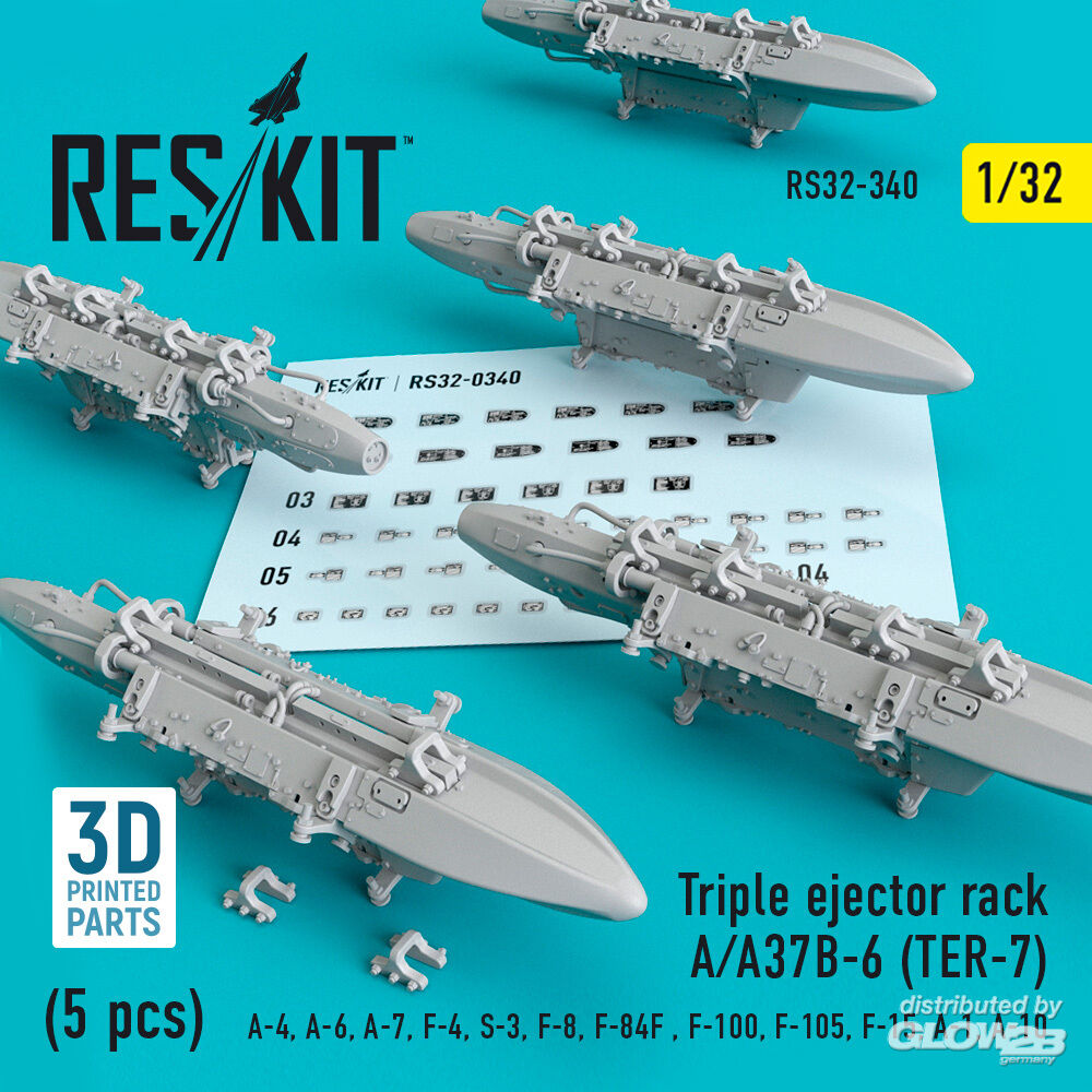 RESKIT Models: Triple Ejector Rack A/A37B-6 (TER-7) (5 pcs) (A-4, A-6, A-7, F-4, S-3,F-8, F-84F, F-100, F-105, F-15, A-1, A-10) in 1:32 [4593103407]