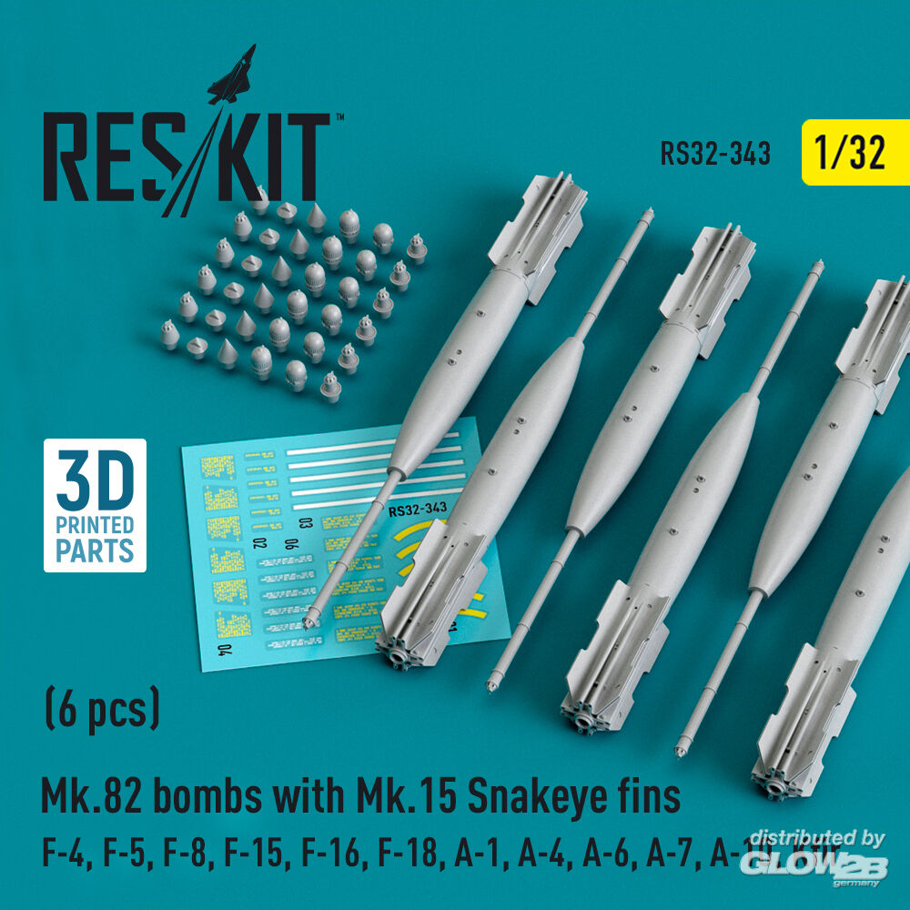 RESKIT Models: Mk.82 bombs with Mk.15 Snakeye fins (6 pcs) (F-4, F-5, F-8, F-15, F-16, F-18, A-1, A-4, A-6, A-7, A-10, Kfir) (3D Printed) in 1:32 [4593103438]