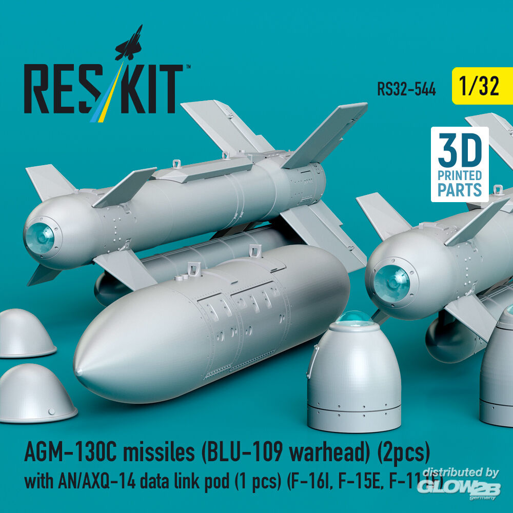 ResKit Models: AGM-130C missiles (BLU-109 warhead) (2 pcs) with AN/AXQ-14 data link pod (1 pcs) (F-16I, F-15E, F-111F) (3D Printed) in 1:32 [4593105449]