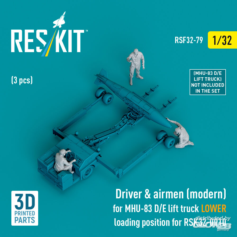 ResKit Models: Driver & airmen (modern) (3 pcs) (MHU-83 D/E lift truck LOWER loading position for RSK32-0010) (3D Printed) in 1:32 [4593400797]