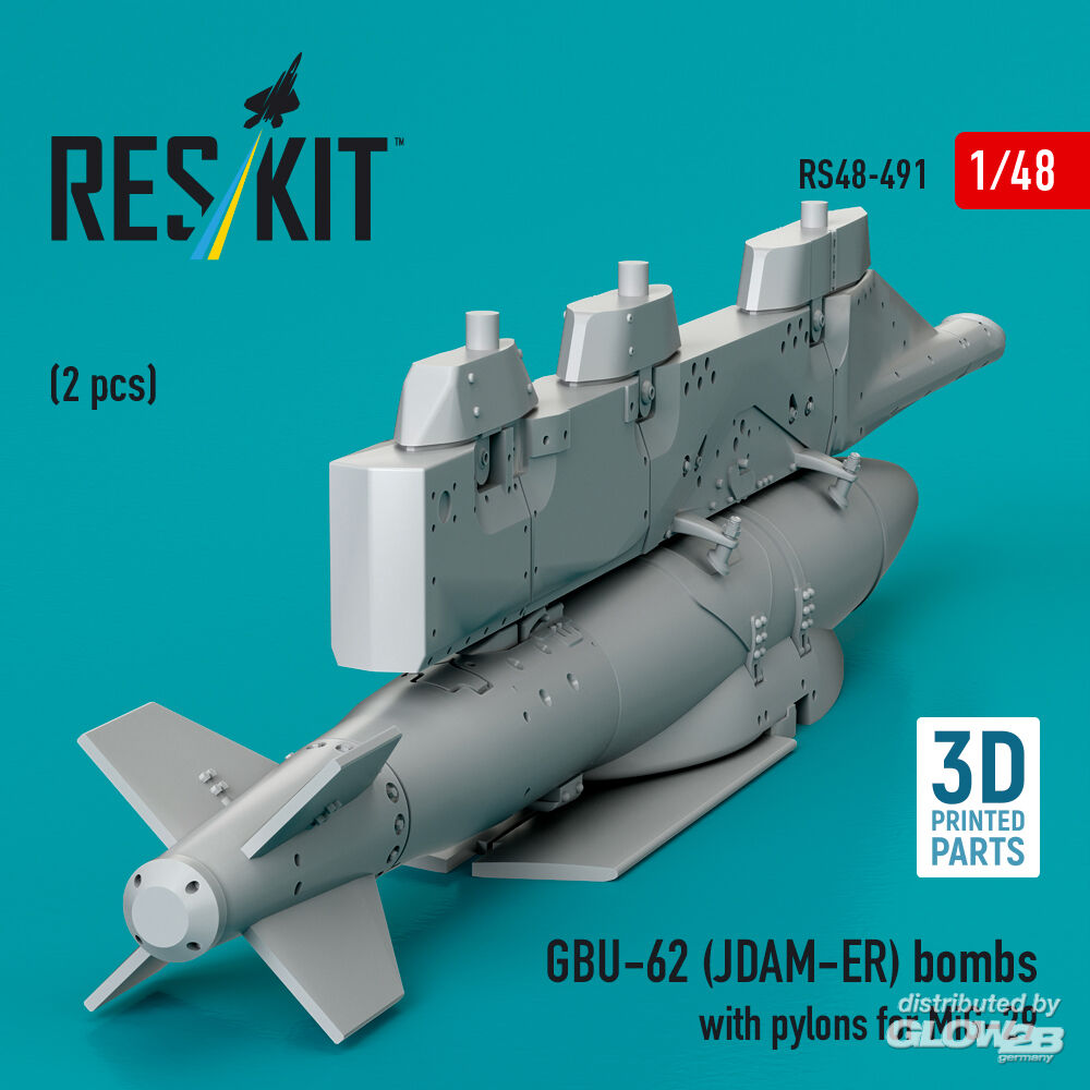 ResKit Models: GBU-62 (JDAM-ER) bombs with pylons for MiG-29 Fulcrum (2 pcs) (3D Printed) in 1:48 [4594104915]