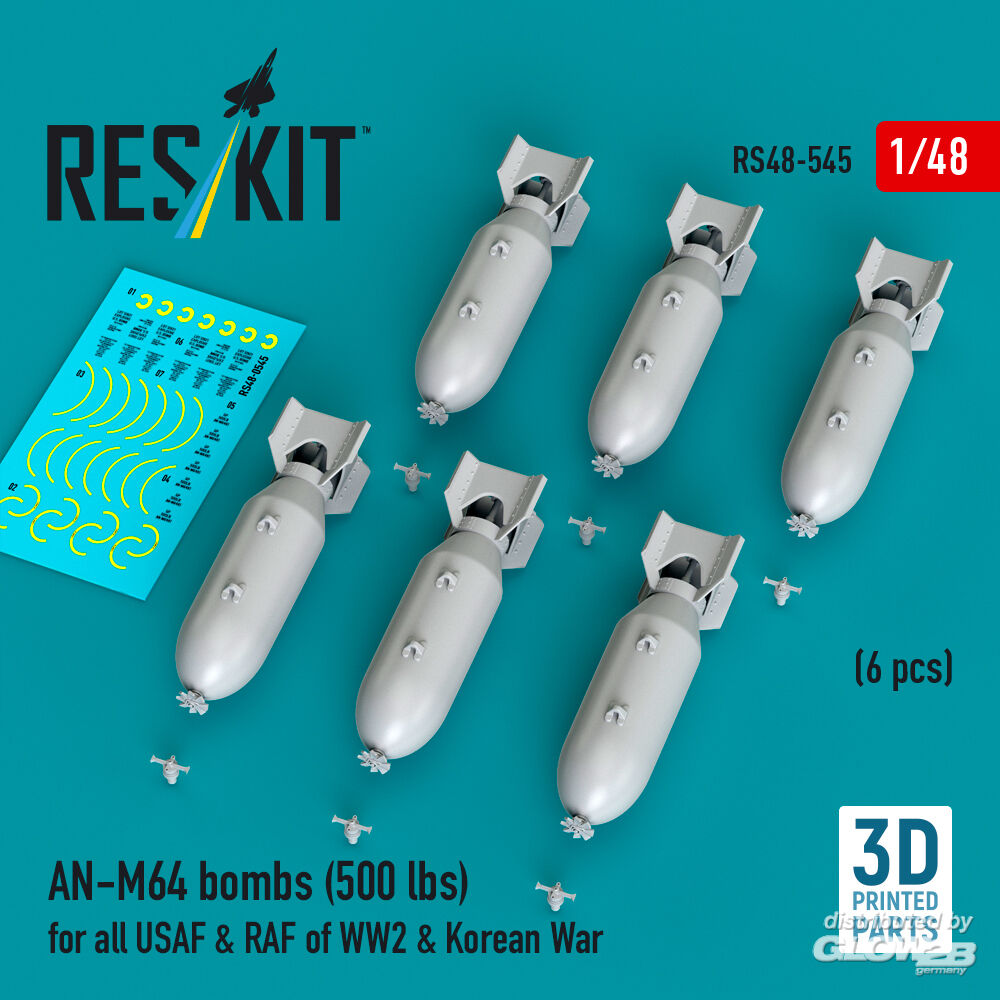 ResKit Models: AN-M64 bombs (6 pcs) (500 lbs) for all USAF & RAF of WW2 & Korean War (3D Printed) in 1:48 [4594105455]