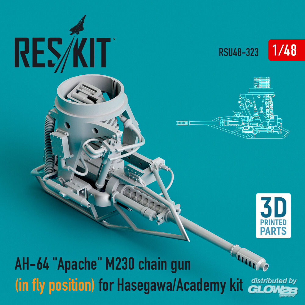 ResKit Models: AH-64 Apache M230 chain gun (in fly position) for Hasegawa/Academy kit (3D Printed) in 1:48 [4594203236]