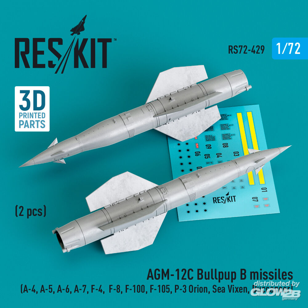 ResKit Models: AGM-12C Bullpup B missiles (2 pcs) (A-4, A-5, A-6, A-7, F-4, F-8, F-100, F-105, P-3 Orion, Sea Vixen, Buccaneer) (3D Printed) in 1:72 [4595104297]