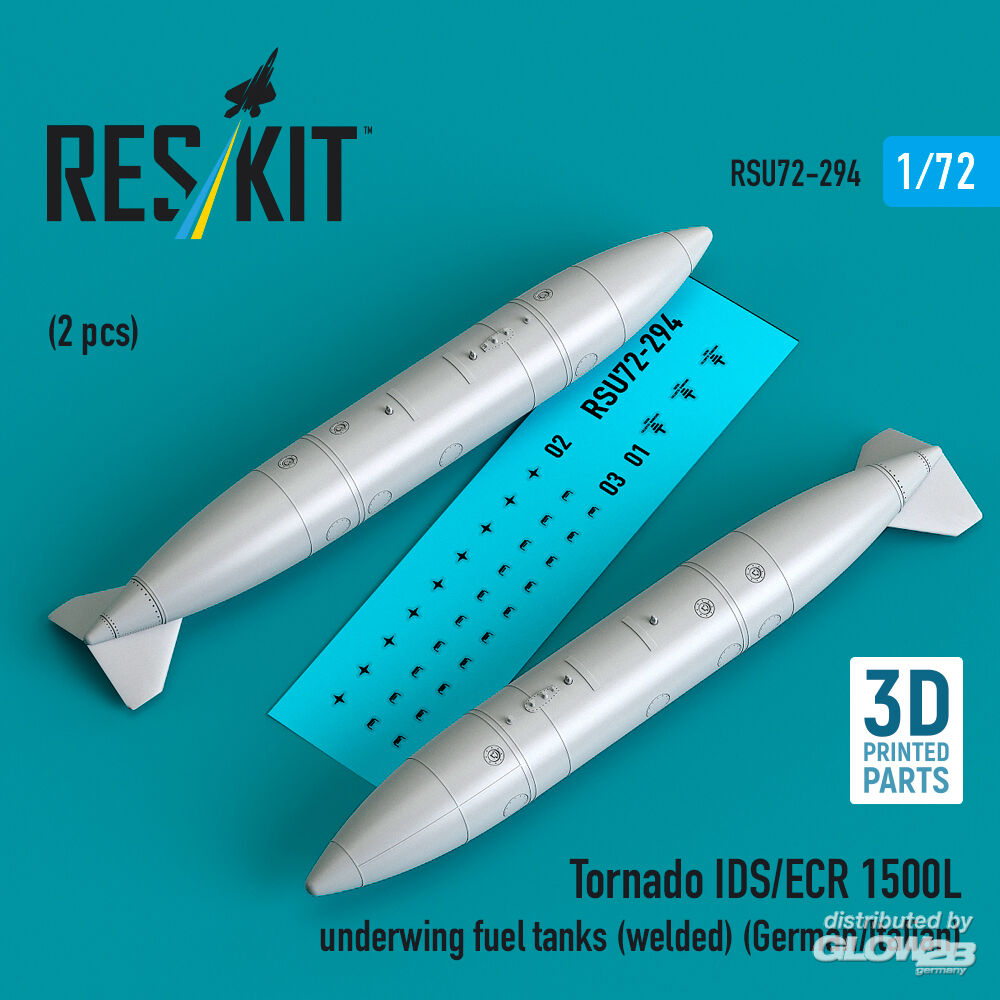ResKit Models: Tornado IDS/ECR 1500L underwing fuel tanks (welded) (German/Italian) (2 pcs) (3D Printed) in 1:72 [4595202948]