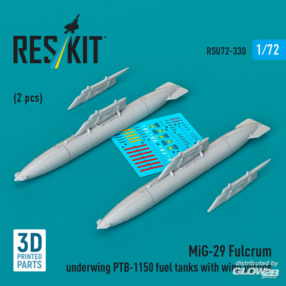 ResKit Models: MiG-29 Fulcrum underwing PTB-1150 fuel tanks with wing pylons (2 pcs) (3D Printed) in 1:72 [4595203303]