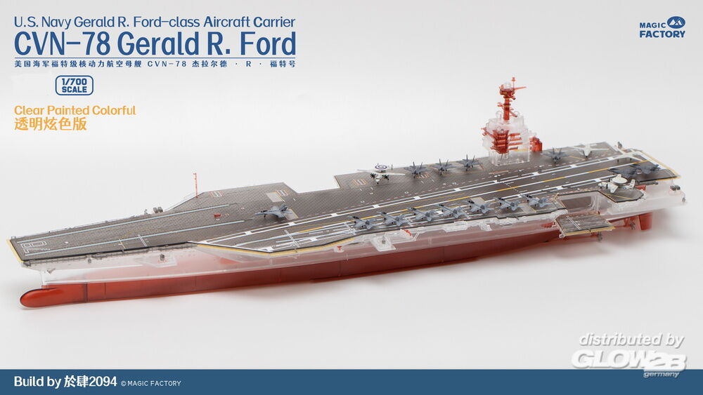 Magic Factory: Clear Painted Colorful U.S. Navy Gerald R. Ford-class aircraft carrier- USS Gerald R. Ford CVN-78 in 1:700 [4715830389]