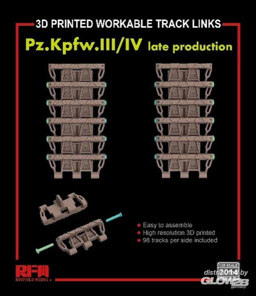 Rye Field Model: Workable track links for Pz. Kpfw. III /IV late production (3D printed ) in 1:35 [4806262095]