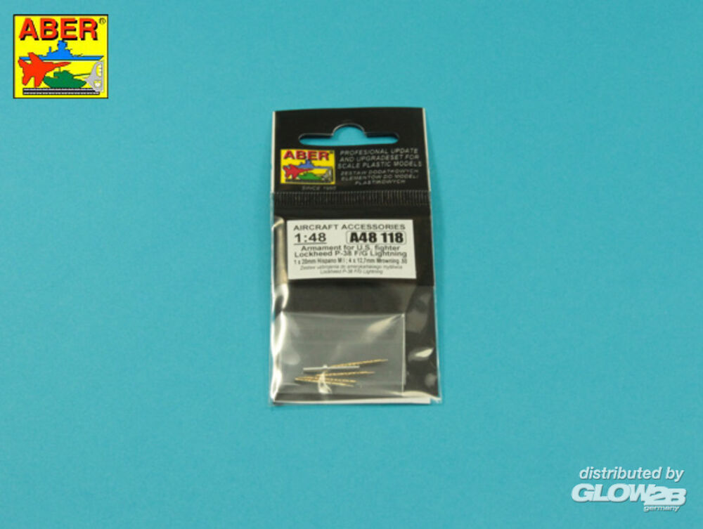 Aber Models: Armament for U.S. fighter Lockheed P-38 F/G Lighting: 1 x 20mm & 4x 12,7mm gun barrels in 1:48 [4832001249]