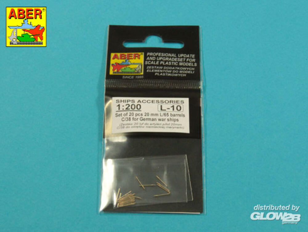 Aber Models: Set of 20 pcs 20 mm L/65 barrels C/38 for German ships in 1:200 [4832001371]