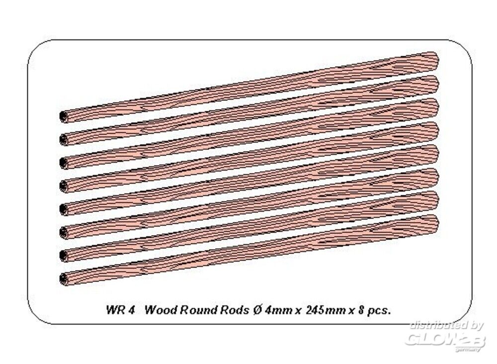 Aber Models: Wood round rods 4mm length 250mm x 8 pcs. [4832001590]