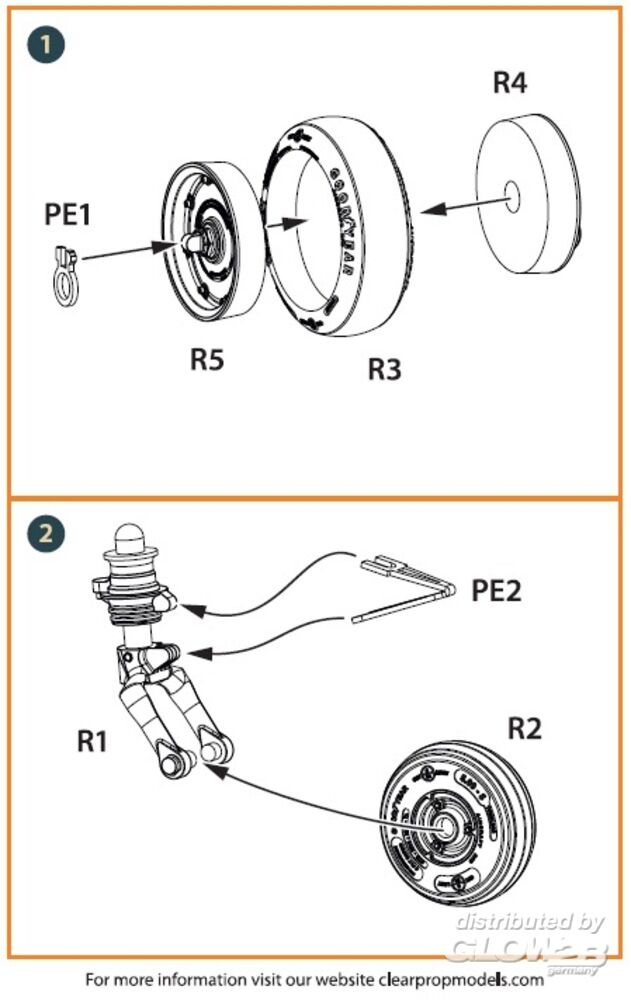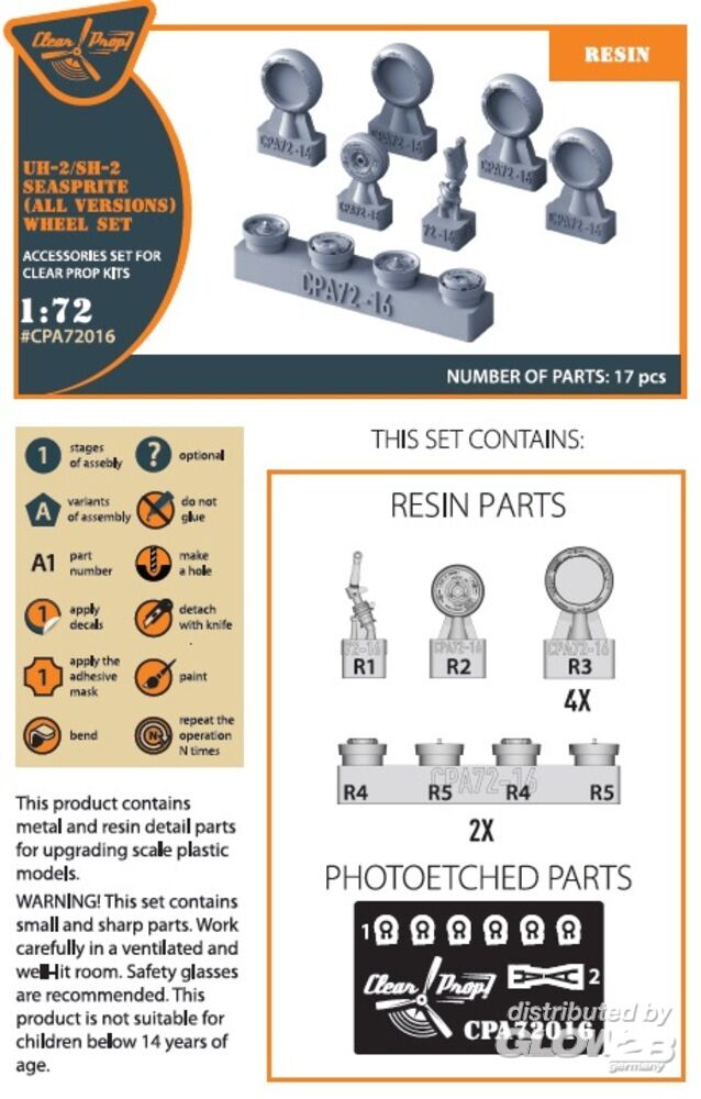 Clear Prop Accessories: UH-2 A/B SEASPRITE (all versions) wheel set for CP kits CP72002/CP72017/CP72018 in 1:72 [5072720160]