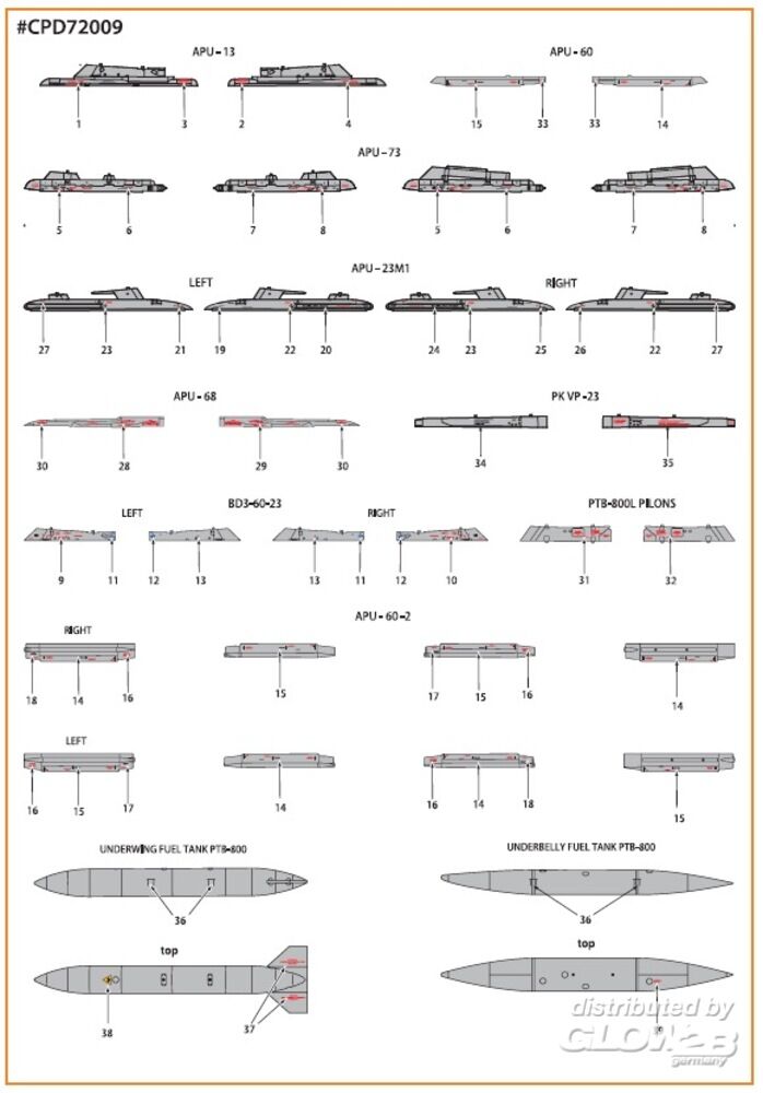 Clear Prop Accessories: MiG-23ML, MLA, MLD, P, MLAE standard english stencils for CP kits and other in 1:72 [5073720091]