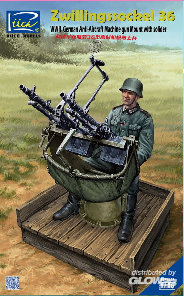 Riich Models: WWII German Zwillingssockel 36 Anti-Aircraft MG Mount w.Solider(include PE&Decal in 1:35 [5339190096]