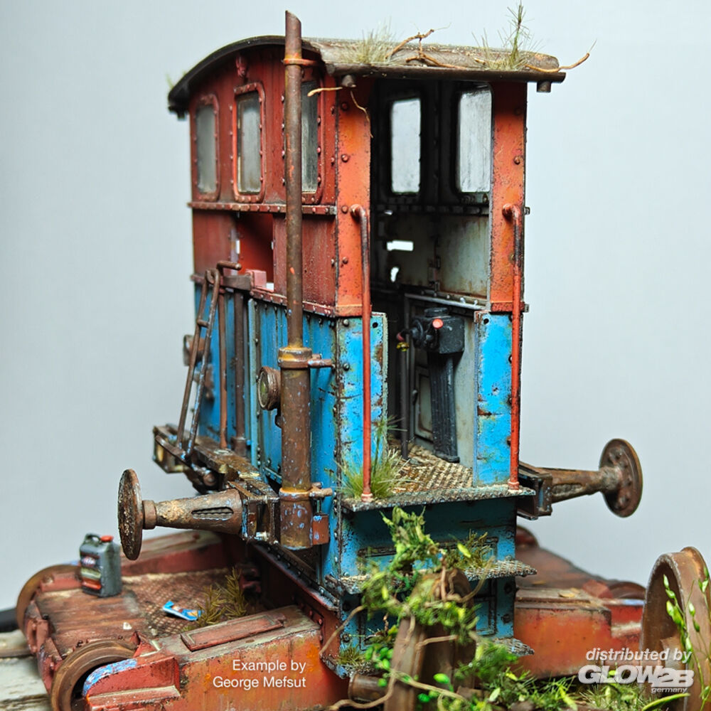 Diese Variante wurde in den 1920er Jahren entworfen, und es wird geschätzt, dass bis 1943 etwa 120 Fahrzeuge in Deutschland hergestellt wurden, wobei weitere Exemplare unter Lizenz in verschiedenen europäischen Ländern produziert wurden, darunter Italien, Österreich, Finnland, Dänemark und die Tschechoslowakei. Im Verlauf von Produktion und Einsatz durchlief die Breuer IV verschiedene Updates, die letztlich zur Entwicklung des Modells V führten. Diese Unterschiede sind auch der Grund für Abweichungen zwischen den verschiedenen in Museen erhaltenen Exemplaren und den auf Referenzfotos dokumentierten Fahrzeugen. Dieser Bausatz im Maßstab 1:35 enthält optionale Teile, die es ermöglichen, mehrere auf den realen Fahrzeugen beobachtete Modifikationen darzustellen, von denen einige sogar bis in die 1980er Jahre im Einsatz blieben. Ebenfalls enthalten sind ein 19?cm langer Gleisabschnitt und eine Figur eines Reichsbahn-Arbeiters. Hauptmerkmale des Bausatzes: - über 150 Plastikteile für die Rangierlok und einen Gleisabschnitt - optionale Teile für verschiedene Varianten - 1 Figur eines Eisenbahnarbeiters - 2 Bemalungs-/Markierungsoptionen Zusatzinformationen