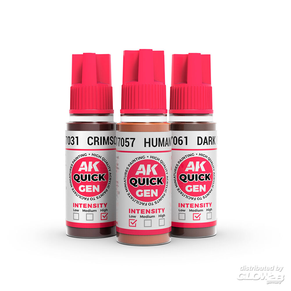 Ein schnelles und effizientes System zum Bemalen von Hauttönen! Calvin Tan hat diese Technik entwickelt, um die Vorteile beider Acrylfarbserien zu nutzen. Die Methode besteht darin, gelbasierte Farben (QUICK GEN) mit herkömmlichen Acrylfarben (3GEN) zu kombinieren und sie mit Verdünner und Ultra Mattlack zu verarbeiten. So lassen sich Gesichter oder menschliche Haut in nur wenigen einfachen Schritten schnell, effizient und mit beeindruckenden Ergebnissen bemalen. Zusatzinformationen