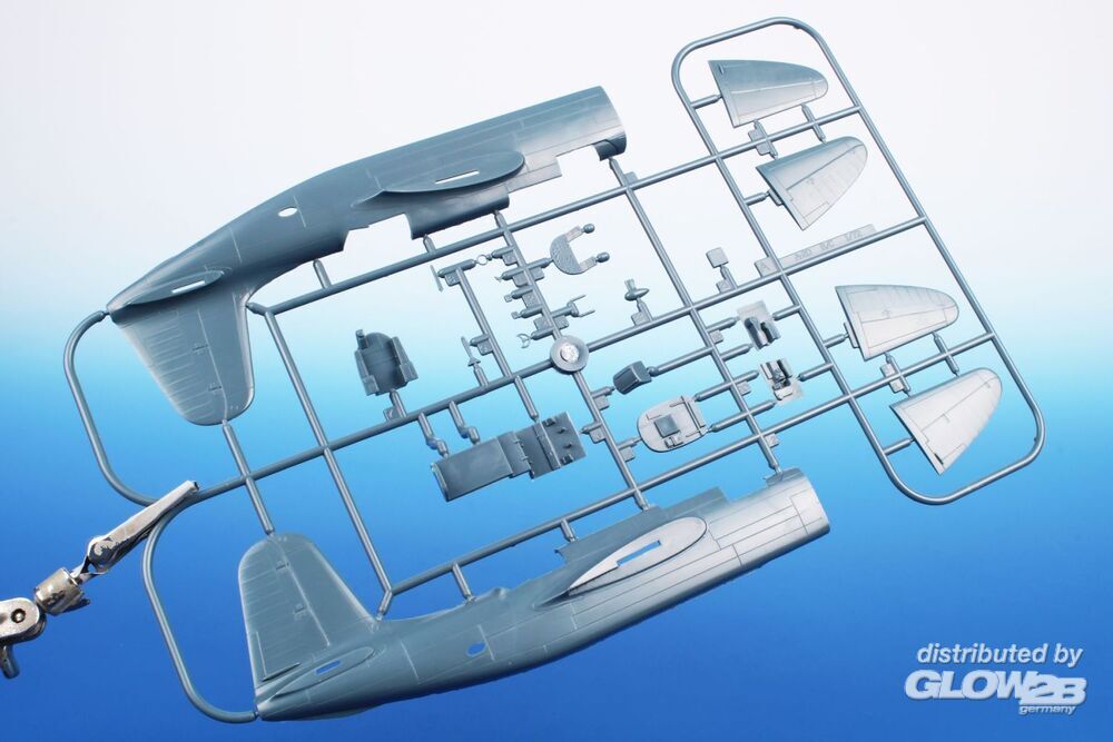 Der Bausatz besteht aus sechs Rahmen mit grauen Kunststoffteilen und einem Rahmen mit transparenten Teilen. Die Abziehbilder zeigen vier Maschinen, von denen drei im Pazifik eingesetzt wurden und eine für Ausbildungszwecke in den Vereinigten Staaten verwendet wurde. - Detailliertes Modell - Interessante Version - Abziehbilder enthalten Nasenbemalung Zusatzinformationen