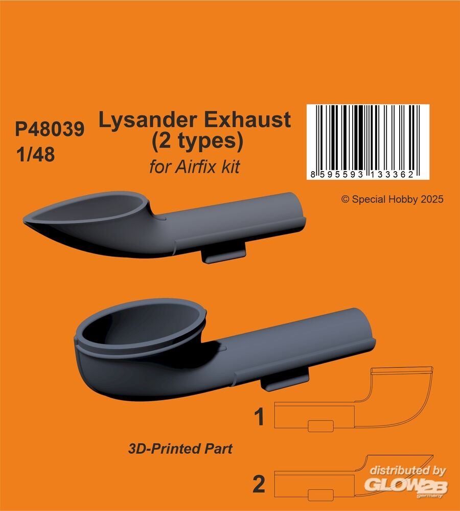 Die Serienversionen der Lysander waren mit zwei verschiedenen Typen von Auspuffrohren ausgestattet – beide sind nun in diesem 3D-gedruckten Set enthalten.