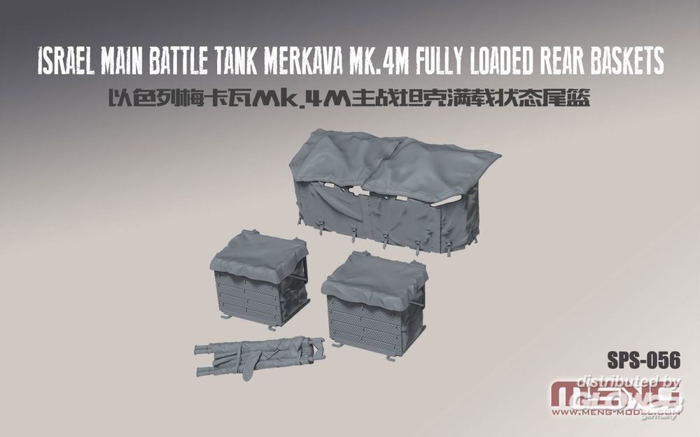This SPS-056 Israel Main Battle Tank Merkava Mk.4M Fully Loaded Rear Baskets kit is a detail upgrade kit for MENG TS-036 Israel Main Battle Tank Merkava Mk.4M. This kit includes two fully loaded rear hull baskets, one fully loaded rear turret basket and one folded stretcher. This product is designed by digital sculpting. The canvas texture is realistically replicated. It’s a perfect match for the TS-036 model.