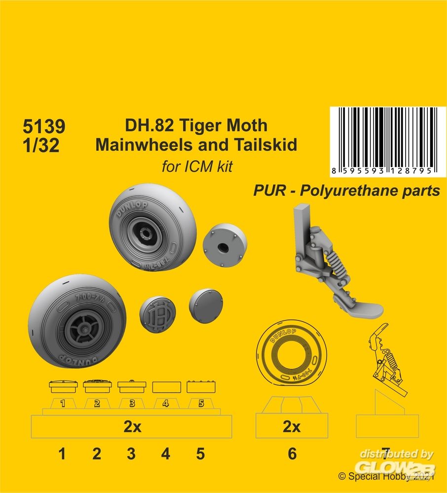 CMK: DH.82 Tiger Moth Mainwheels and Tailskid (ICM kit) in 1:32 [6005139]