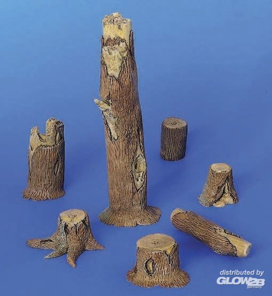 Set mit 7 Resinteilen für verschiedeartige Baumstümpfe.