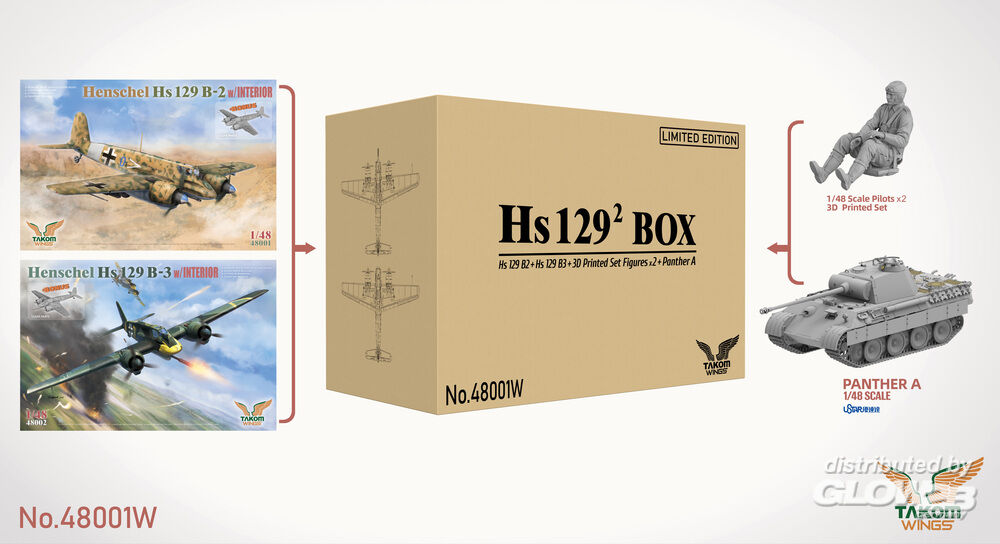 Takom: Hs 129² BOX Hs 129 B2+Hs 129 B3+3D Printed Set Figures x2+Panther A (Limited edition) in 1:48 [7051423522]
