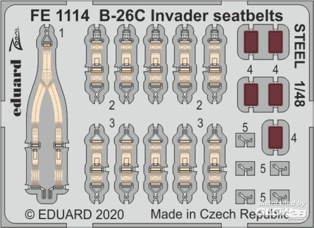 Eduard Accessories: B-26C Invader seatbelts STEEL for ICM in 1:48 [7241114]