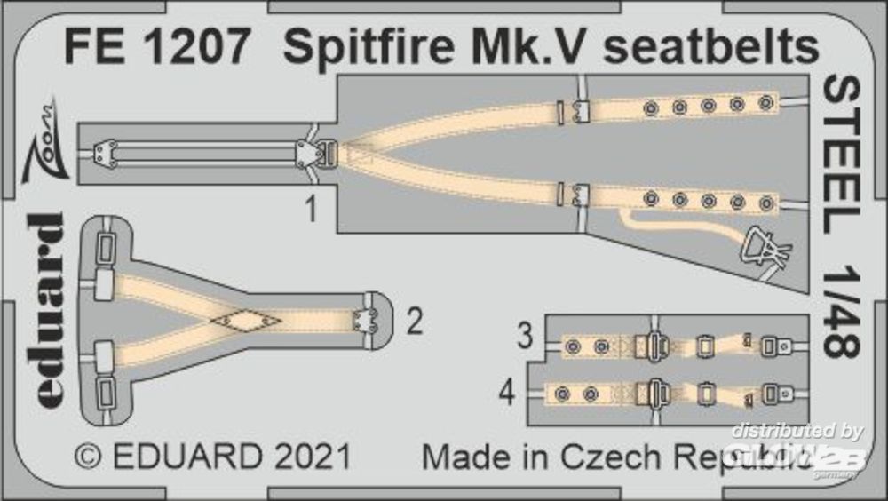 Eduard Accessories: Spitfire Mk.V seatbelts STEEL 1/48 for EDUARD/SPECIAL HOBBY in 1:48 [7241207]
