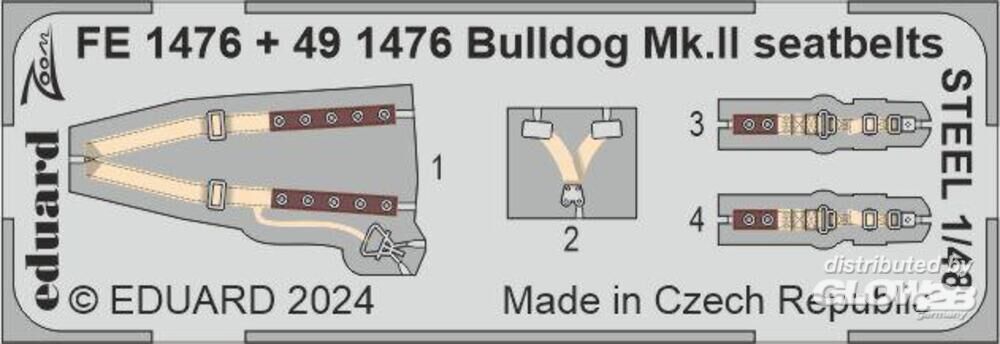 Eduard Accessories: Bulldog Mk.II seatbelts STEEL in 1:48 [7241476]