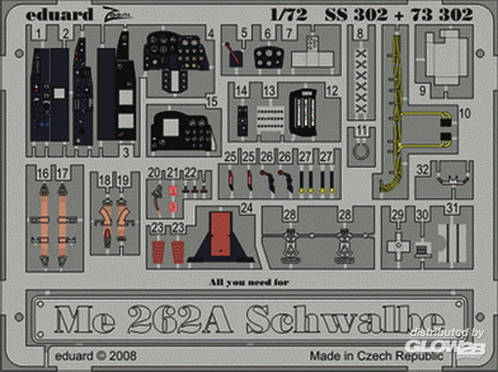 Eduard Accessories: Me 262A Schwalbe für Academy Bausatz in 1:72 [7250302]