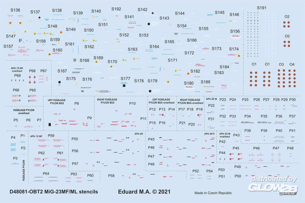 Eduard Accessories: MiG-23MF/ML stencils 1/48 for TRUMPETER in 1:48 [7307081]
