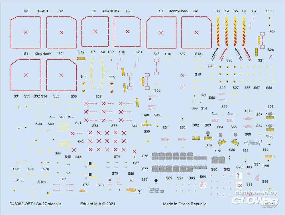 Eduard Accessories: Su-27 stencils 1/48 for ACADEMY/KITTY HAWK/HOBBY BOSS/GWH in 1:48 [7307082]