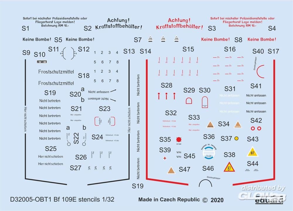 Eduard Accessories: Bf 109E stencils for Eduard in 1:32 [7307305]