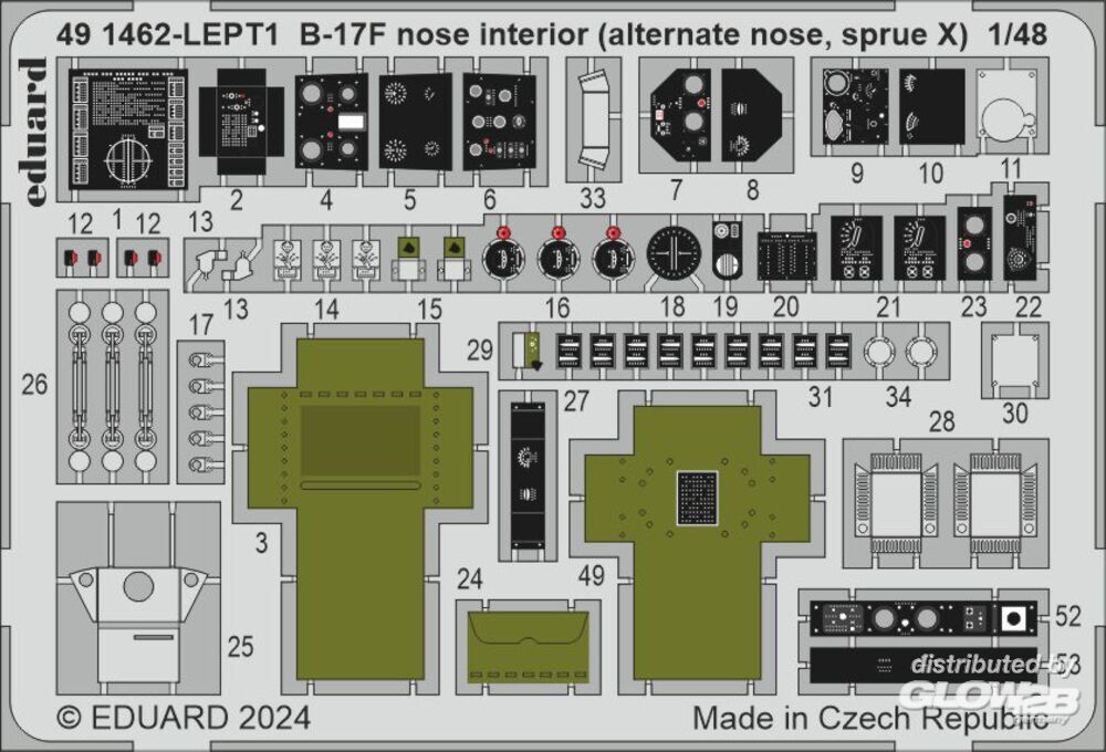 Eduard Accessories: B-17F nose interior (alternate nose, sprue X) 1/48 in 1:48 [8591491462]