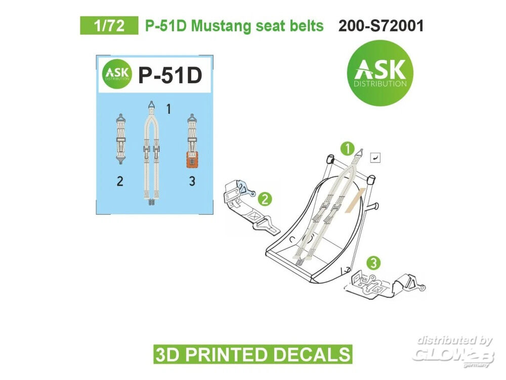Art Scale Kit: P-51D Mustang seat belts - 3D printed decals by ASK in 1:72 [9260023000]