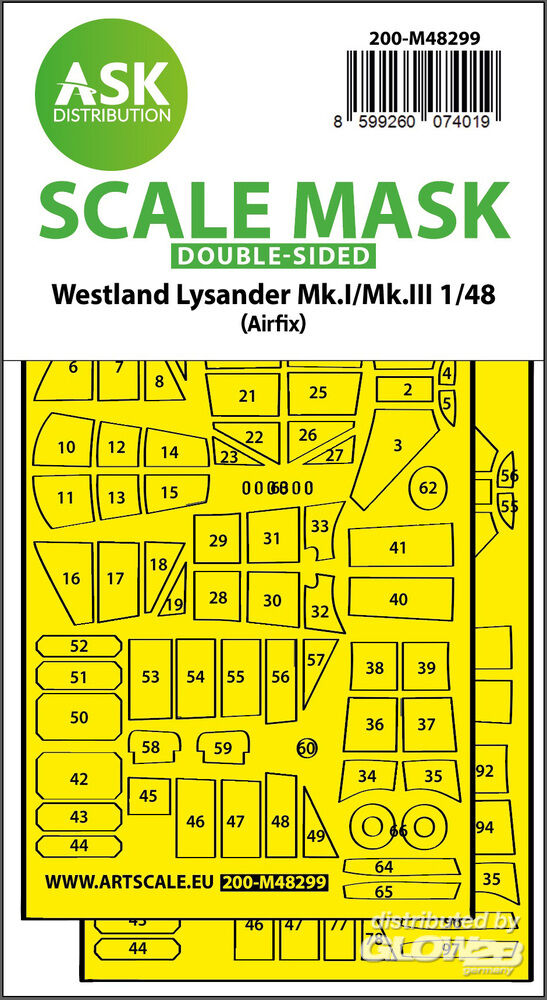 Art Scale Kit: Lysander Mk.I / Mk.III double-sided express fit mask for Airfix in 1:48 [9260074019]