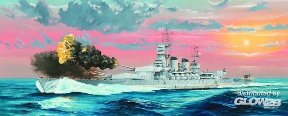 Hull -Upper hull made from two-directional slide moulds -Deck wood pattern finely rendered -Either waterline or full-hull version can be assembled Weapons - Realistically detailed gun barrels w/hollow ends made from slide mould Aircraft -Contains 1 Re.2000 and 1 Ro.43 Stand -Contains display stand and engraved name plate Photo-Etched parts - Photo-Etched parts included Zusatzinformationen