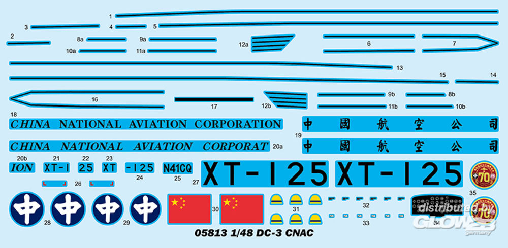 ~ Left and right fuselage are slide moulded w/ numberless rivets details ~ Split cargo door with ladder made from astoundingly delicate photo-etched parts ~ Clear windows to assemble to show the full interior Engine ~ Finely detailed 2x R-1830-90C "Twin Wasp" 14-cylinder radial engines ~ Air Scoops are slide moulded w/ authentic details ~ Dust Filters are slide moulded w/ fine detail ~ All intake grill made from photo-etched parts Exterior ~ Optional plastic or Die cast landing gear struts slide moulded made due to the weight of the plane Interior ~ Finely detailed landing gear well ~ Finely detailed cockpit ~ The sleeping berth seats on passenger cargo come as separate parts ~ Safety harness w/photo-etched parts for great detail ~ One-piece cargo floor rendered in fine detail Wings ~ Optional position flaps PE ~ The photo-etched fret include comes as in size 55x70mm, contains numerous safety harness Zusatzinformationen