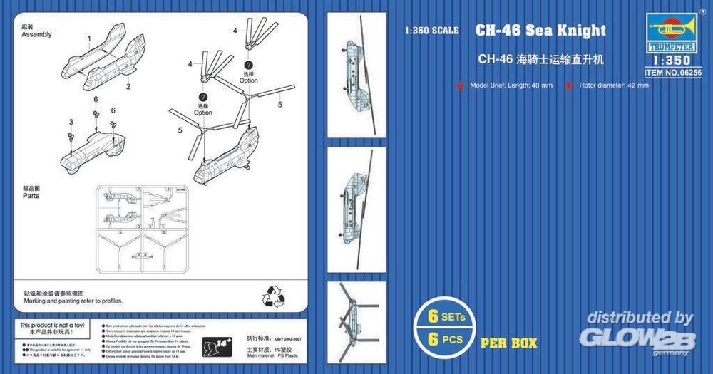 Trumpeter: CH-46 Sea Knight (6 aircraft) in 1:350 [9366256]