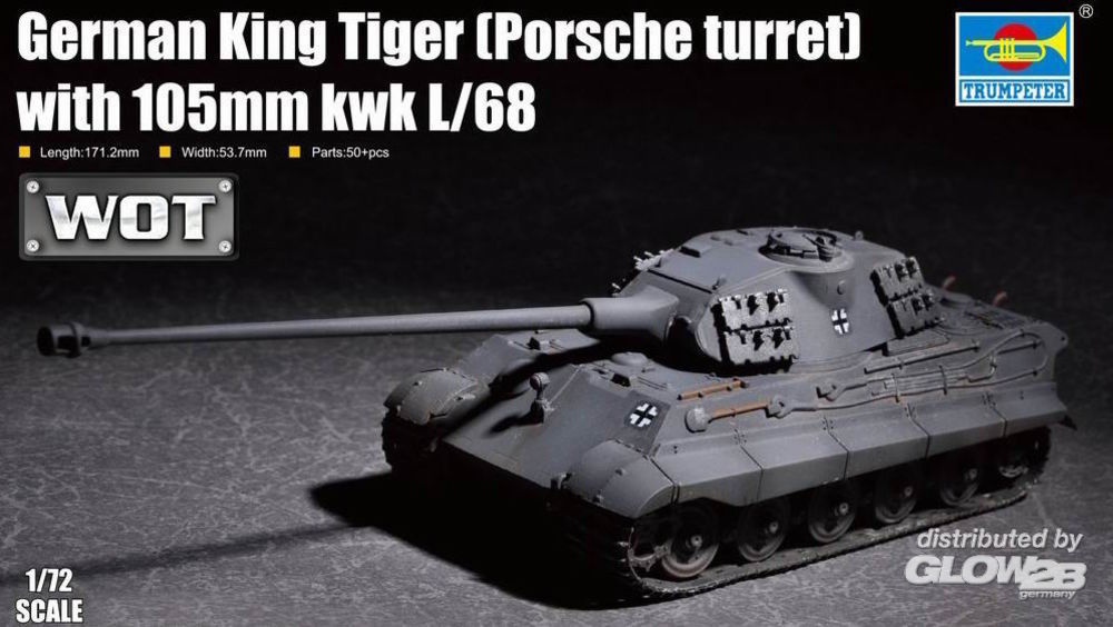 Trumpeter: German King Tiger(Porsche turret)w.105mm kWh L/68 in 1:72 [9367161]